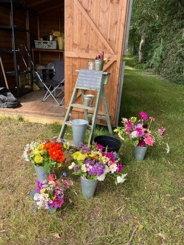 There are 3 bucket sizes available. When you arrive, choose one and we will give you some snips so you can fill it with the flowers that catch your eye. Then either transfer the flowers to your own container or, for a few extra quid, take the bucket home with you